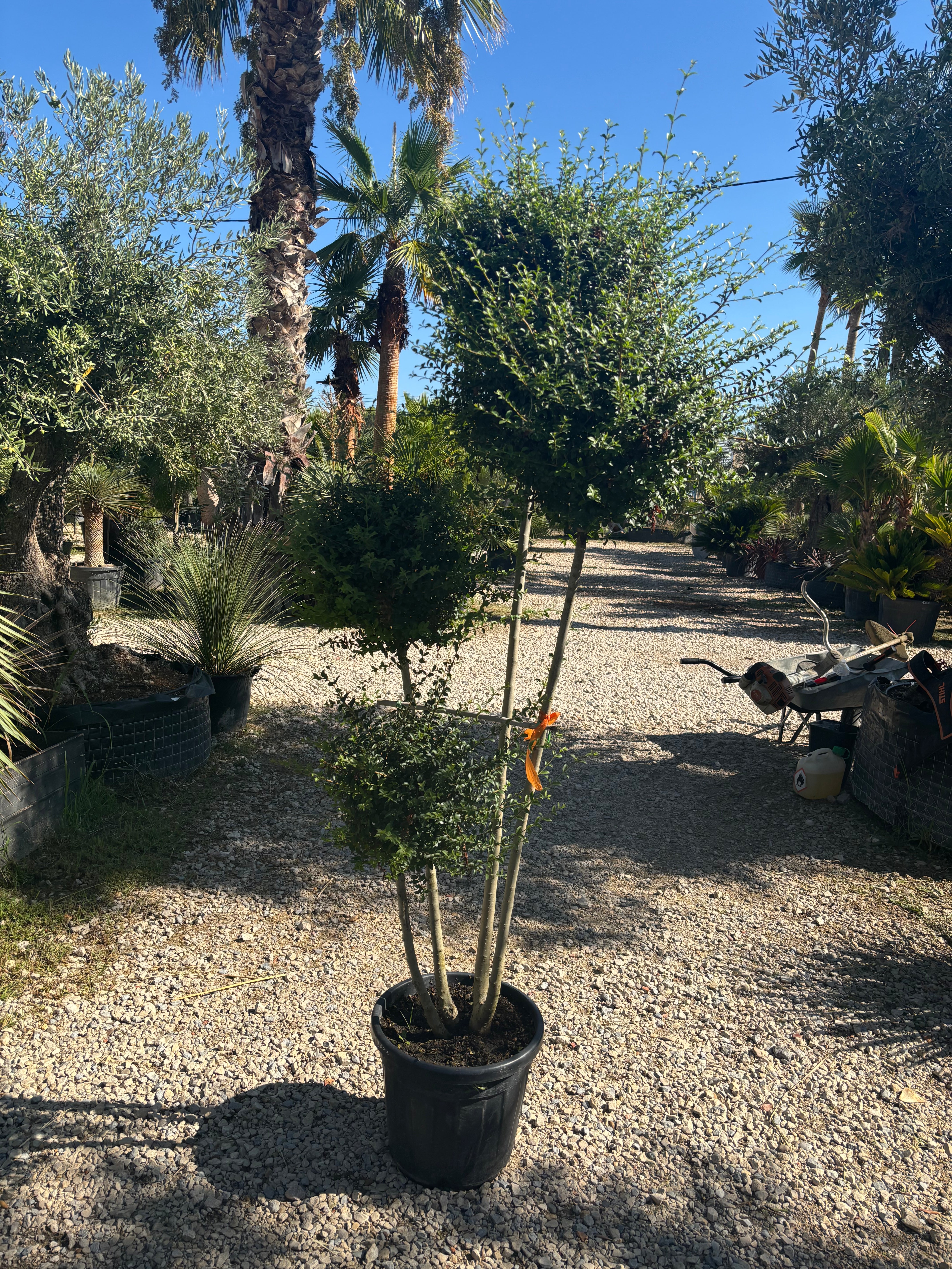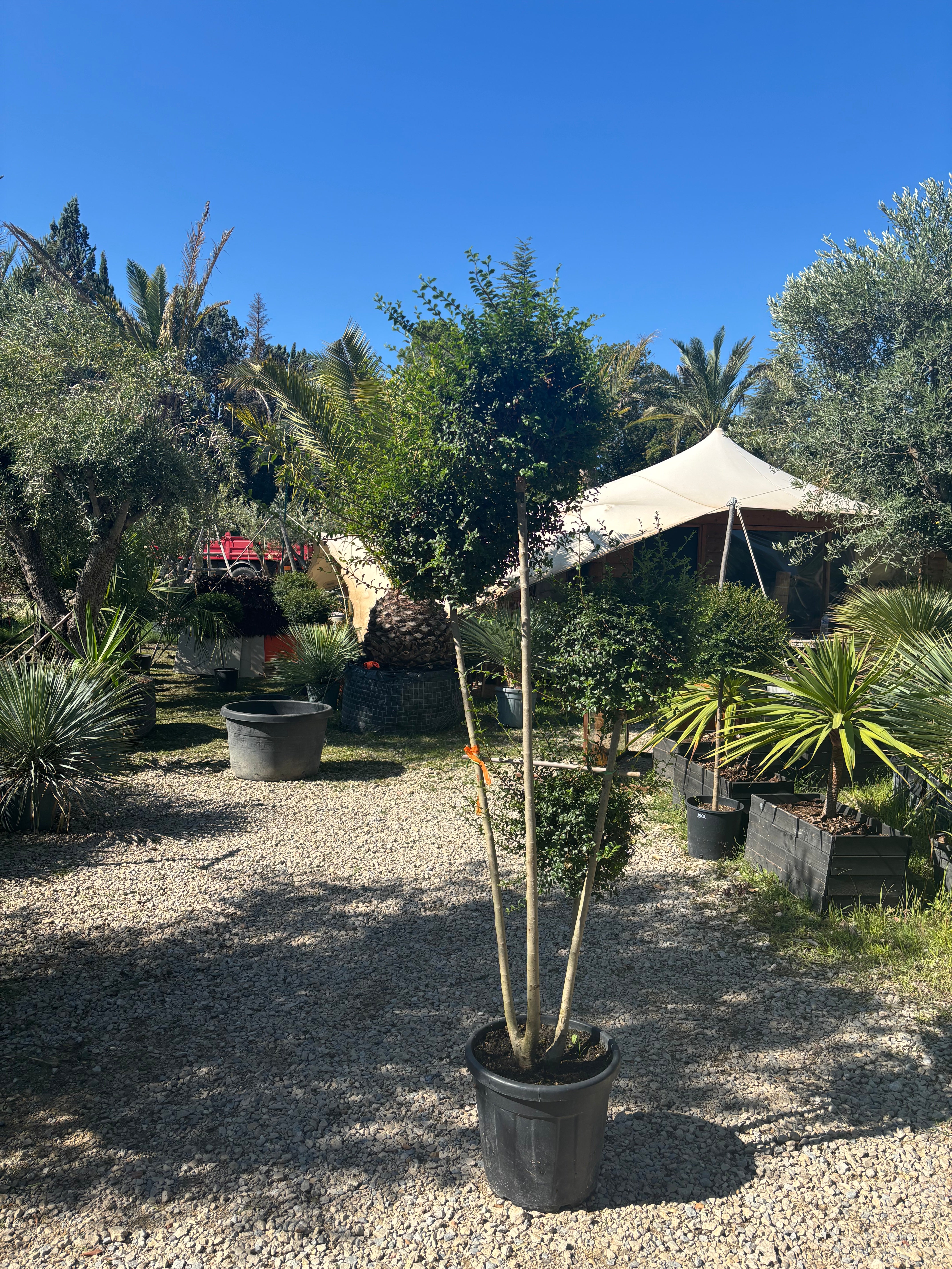 Ce sujet, taillé en forme nuageuse ou structurée, est une véritable œuvre vivante, parfaite pour apporter une touche d’élégance zen et contemporaine à vos extérieurs. Son feuillage vert profond et sa texture fine s’harmonisent parfaitement avec les plantes méditerranéennes ou exotiques comme les palmiers, oliviers et yuccas.