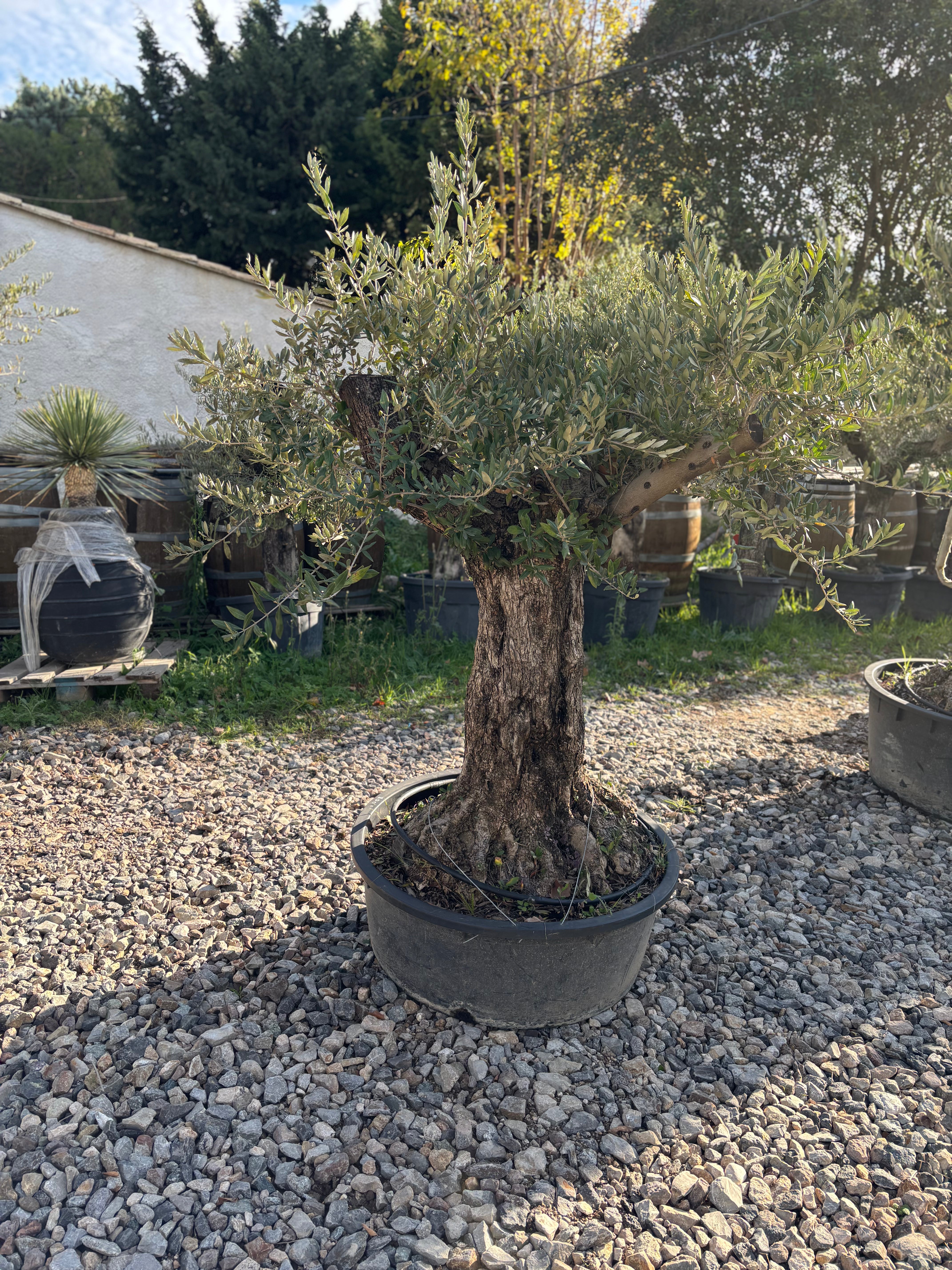 Découvrez nos oliviers centenaires, sélectionnés pour leur tronc ancien au caractère unique, large et naturellement sculpté par le temps. Chaque sujet est une véritable pièce vivante, avec une structure harmonieuse, des courbes naturelles et une présence visuelle exceptionnelle.