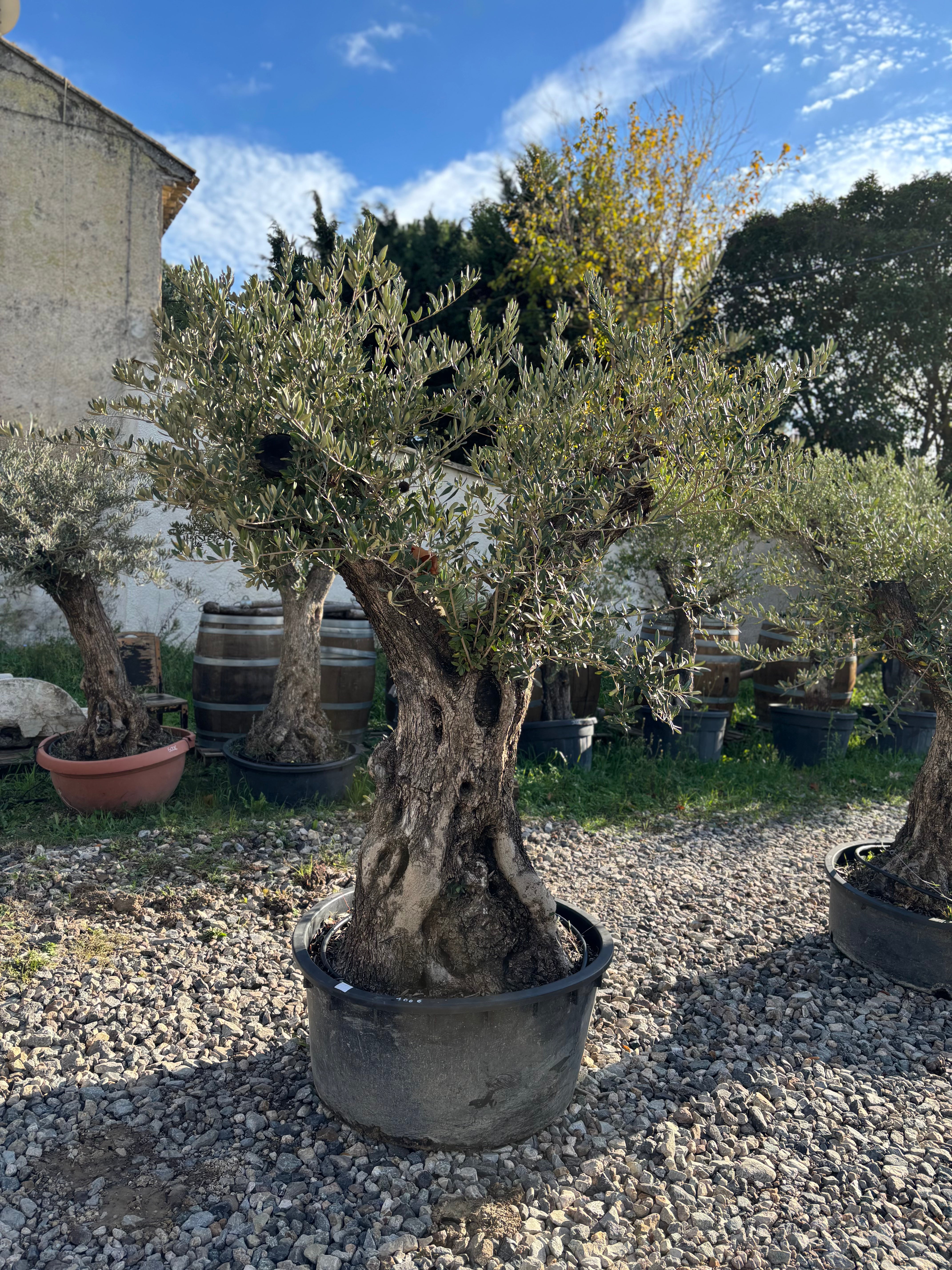 Découvrez nos oliviers centenaires, sélectionnés pour leur tronc ancien au caractère unique, large et naturellement sculpté par le temps. Chaque sujet est une véritable pièce vivante, avec une structure harmonieuse, des courbes naturelles et une présence visuelle exceptionnelle.