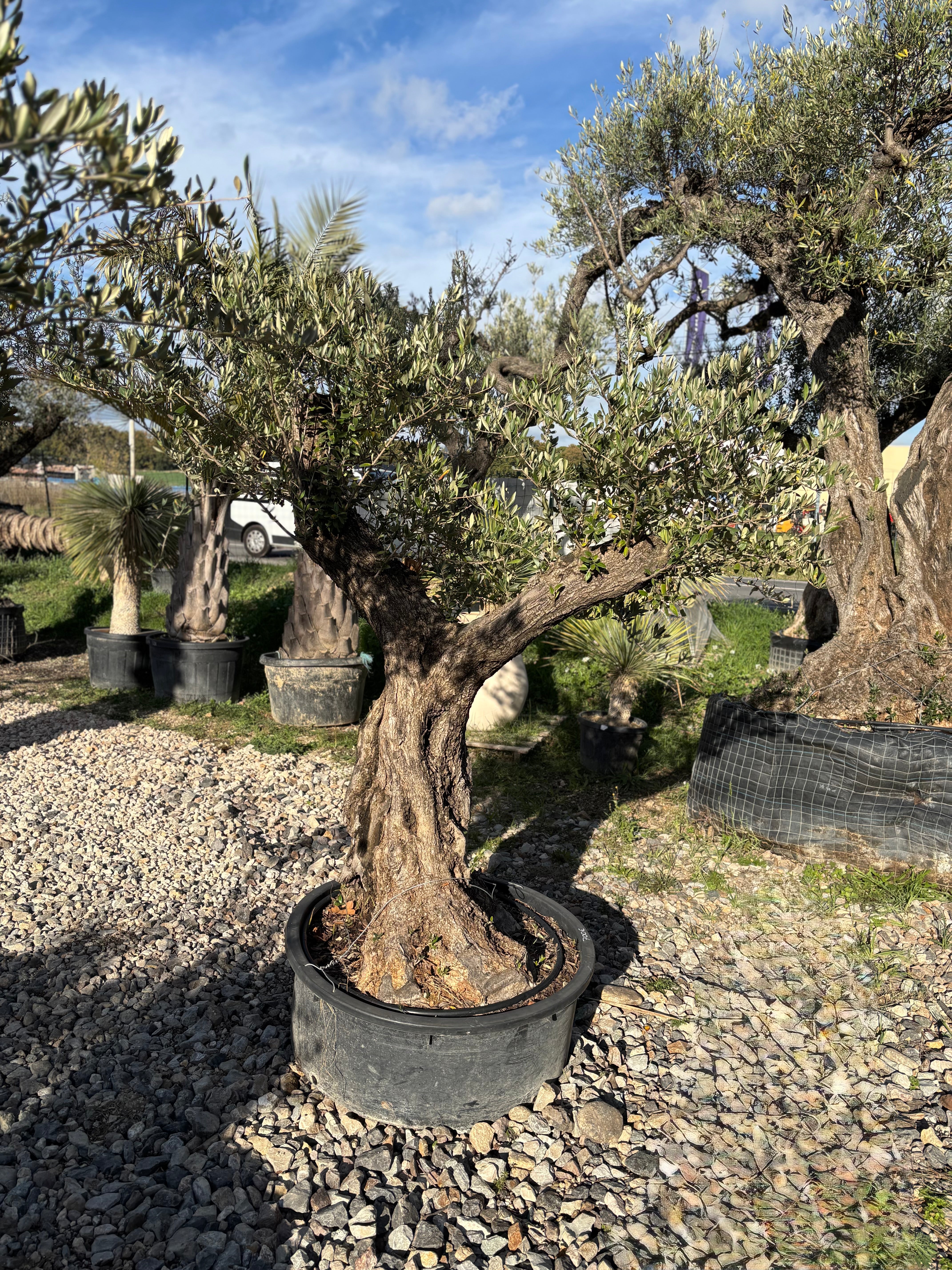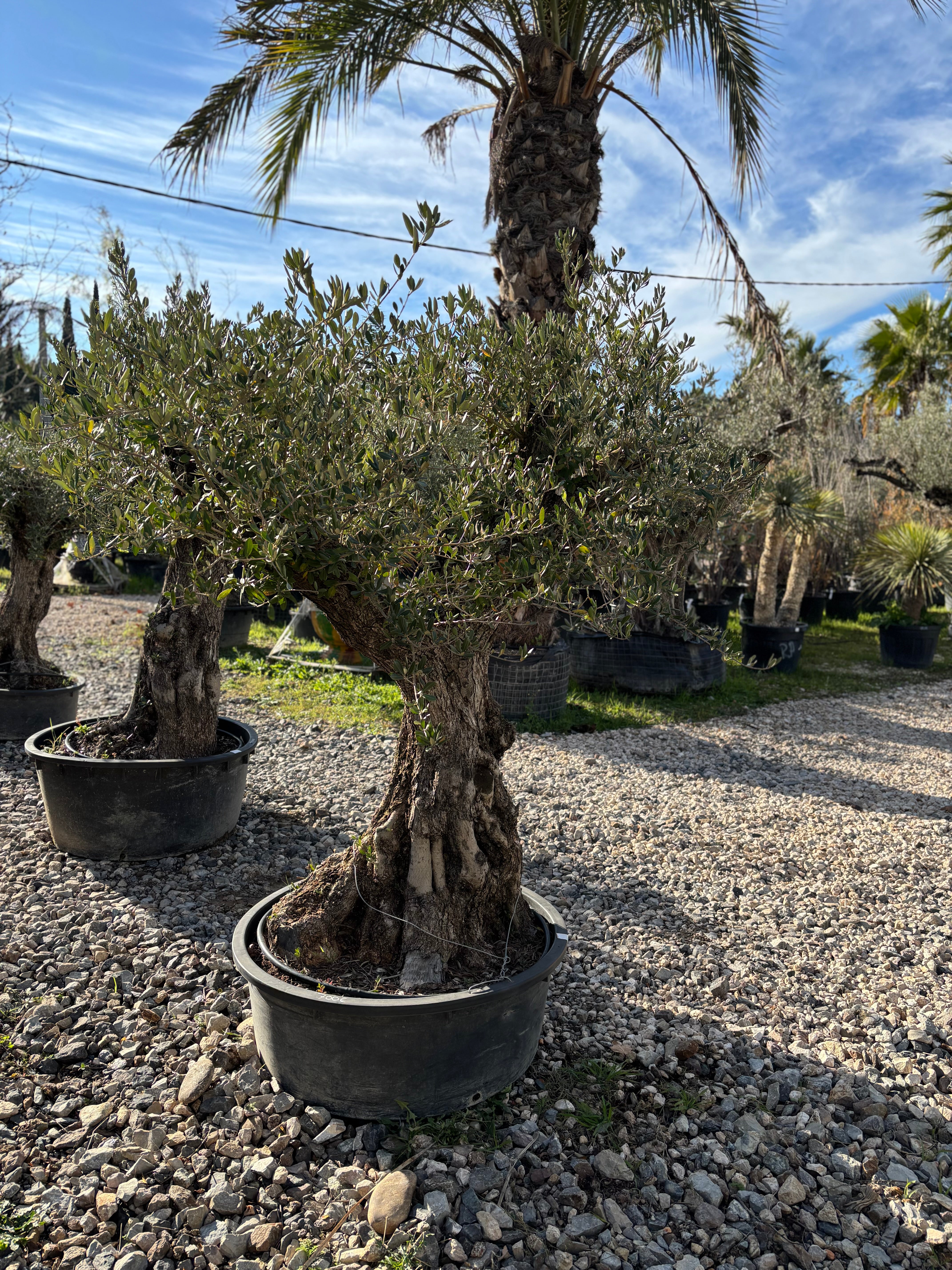 Découvrez nos oliviers centenaires, sélectionnés pour leur tronc ancien au caractère unique, large et naturellement sculpté par le temps. Chaque sujet est une véritable pièce vivante, avec une structure harmonieuse, des courbes naturelles et une présence visuelle exceptionnelle.