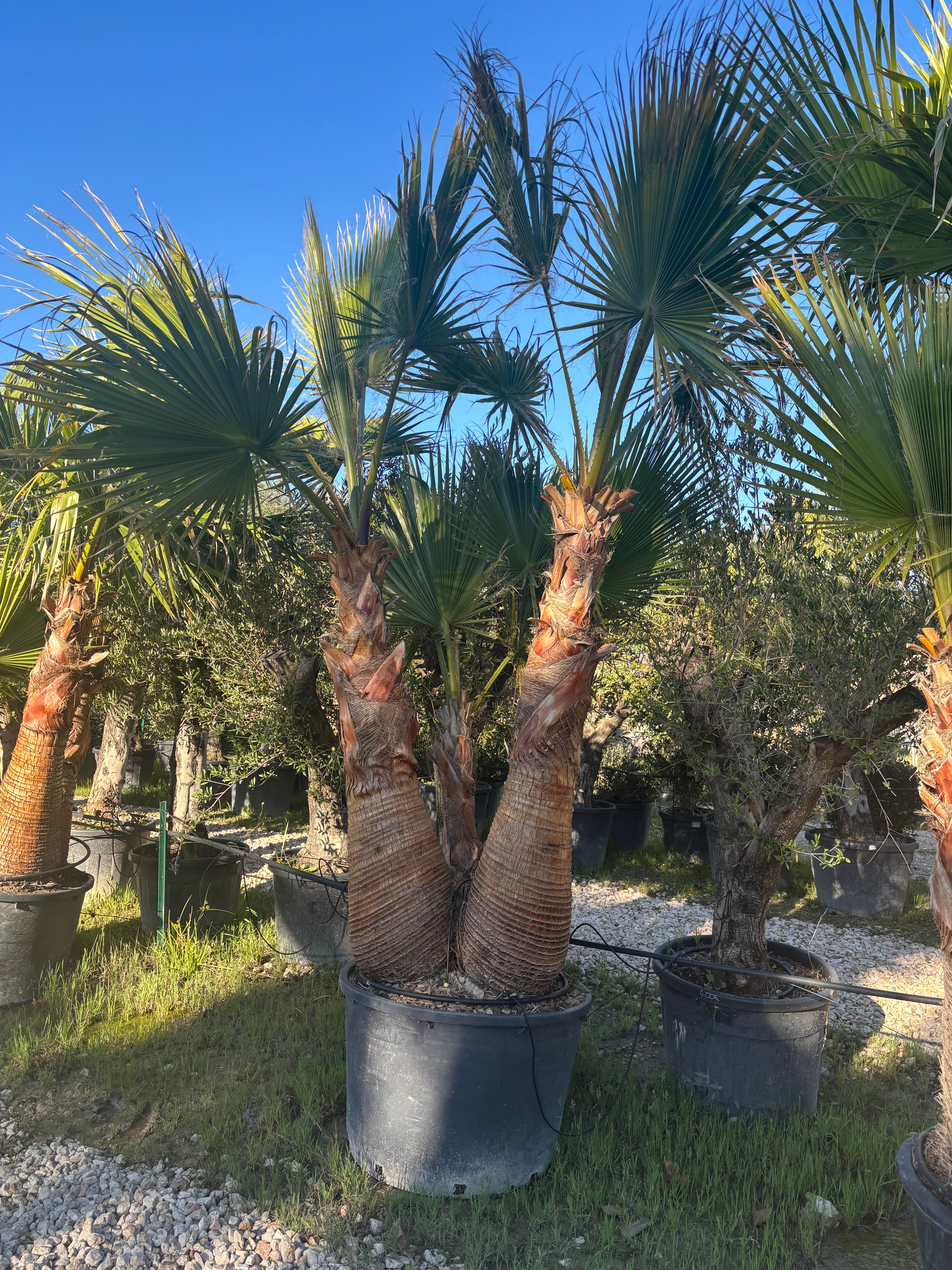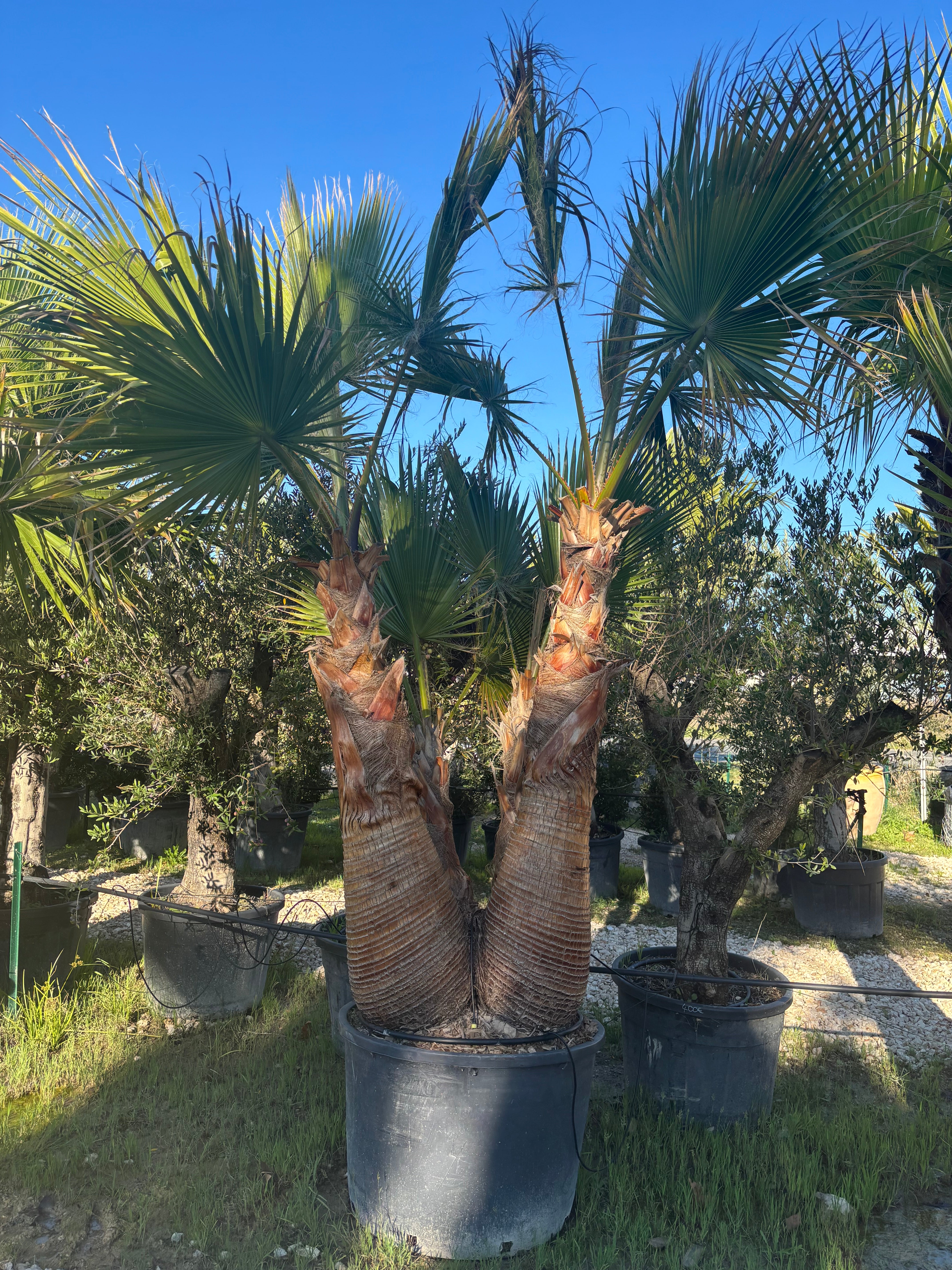 Offrez à votre jardin une allure spectaculaire avec ce Washingtonia robusta triple tronc écorcé, un sujet rare et hautement décoratif. Ses fûts élancés, parfaitement nettoyés, apportent une esthétique élégante et contemporaine. Sa silhouette dynamique crée un volume architectural idéal pour structurer un jardin moderne, une entrée de villa ou un espace piscine.