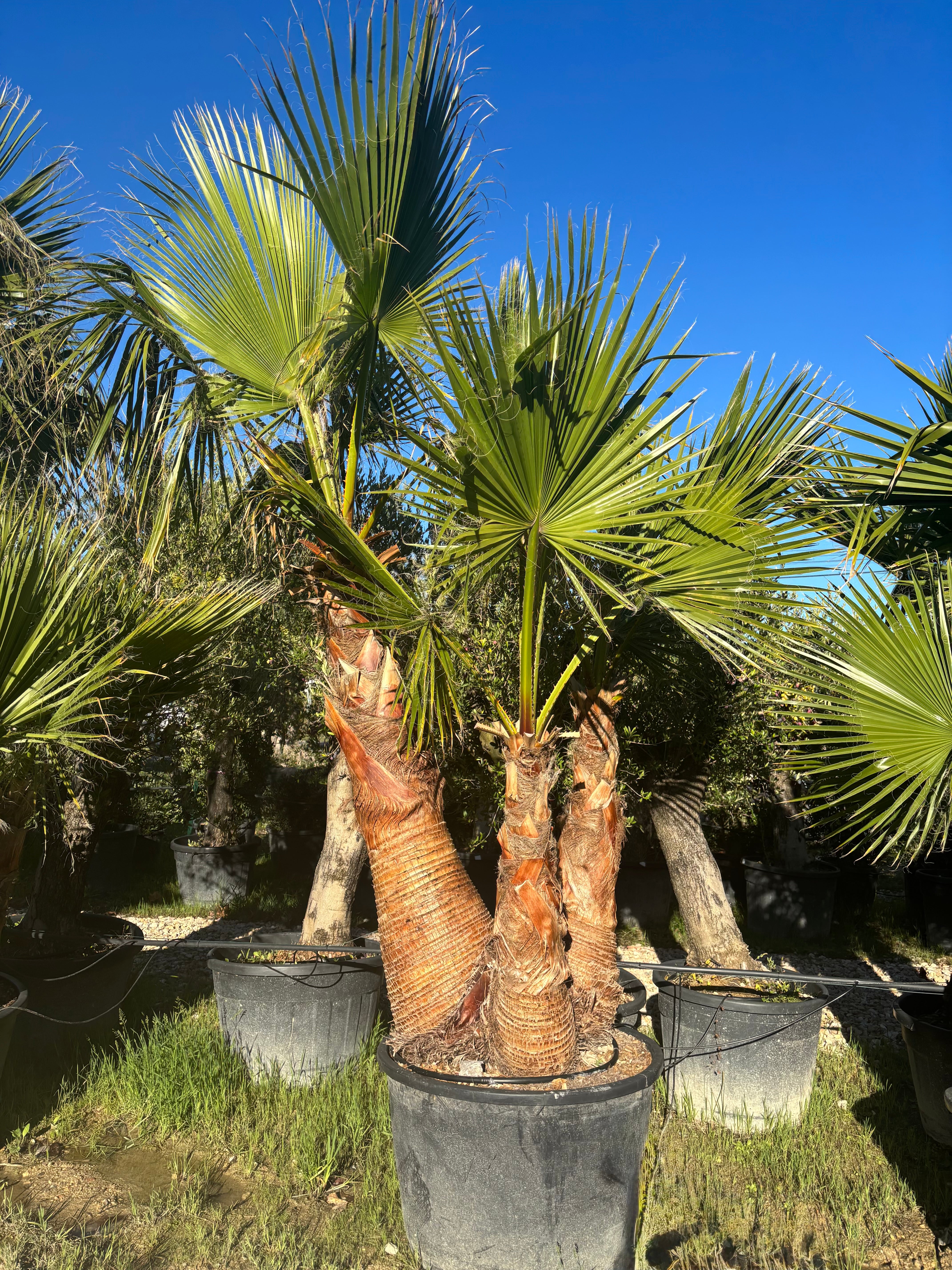 Offrez à votre jardin une allure spectaculaire avec ce Washingtonia robusta triple tronc écorcé, un sujet rare et hautement décoratif. Ses fûts élancés, parfaitement nettoyés, apportent une esthétique élégante et contemporaine. Sa silhouette dynamique crée un volume architectural idéal pour structurer un jardin moderne, une entrée de villa ou un espace piscine.